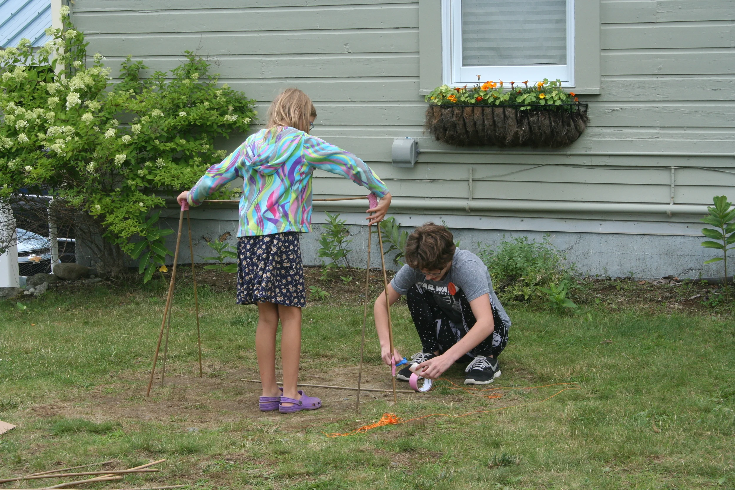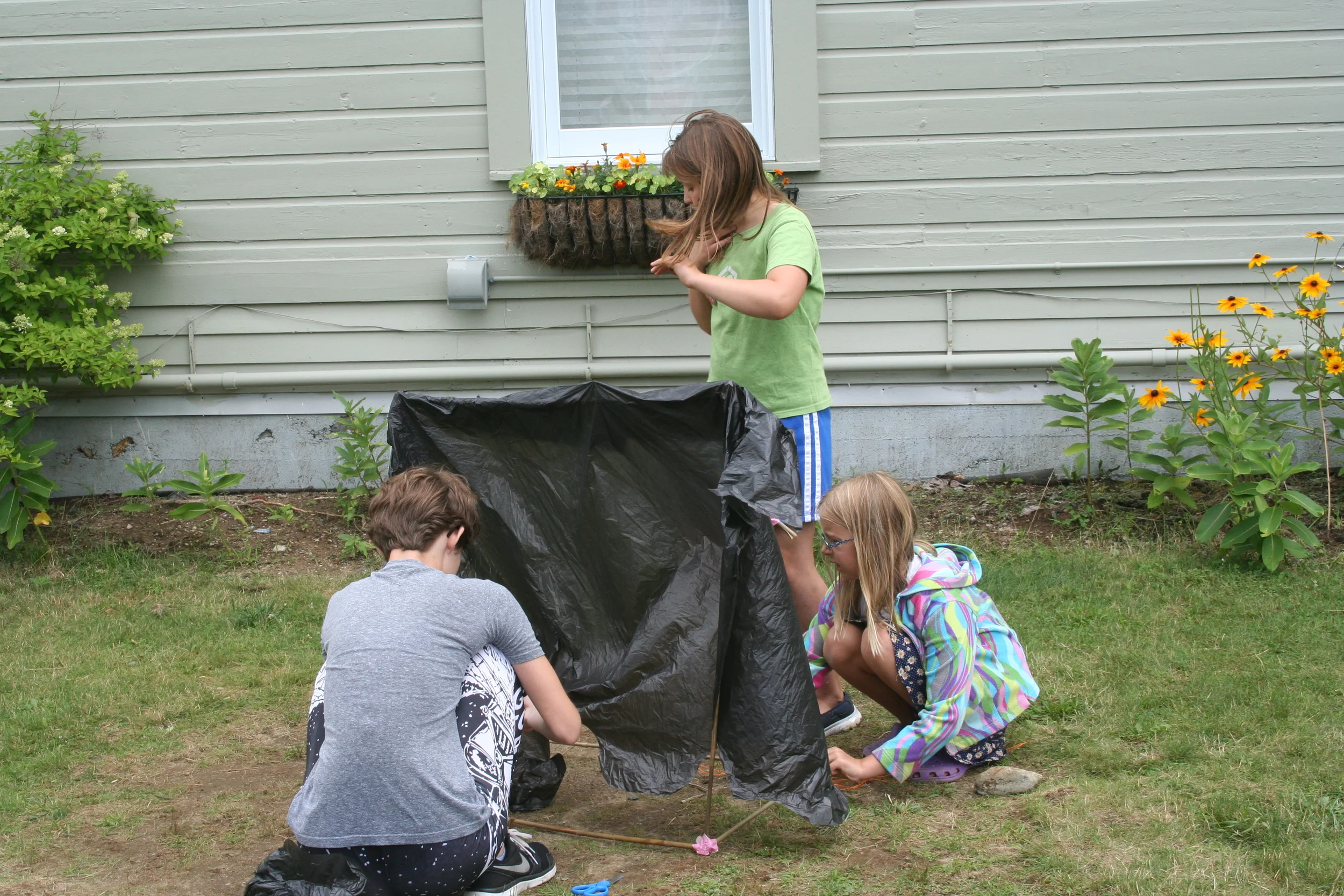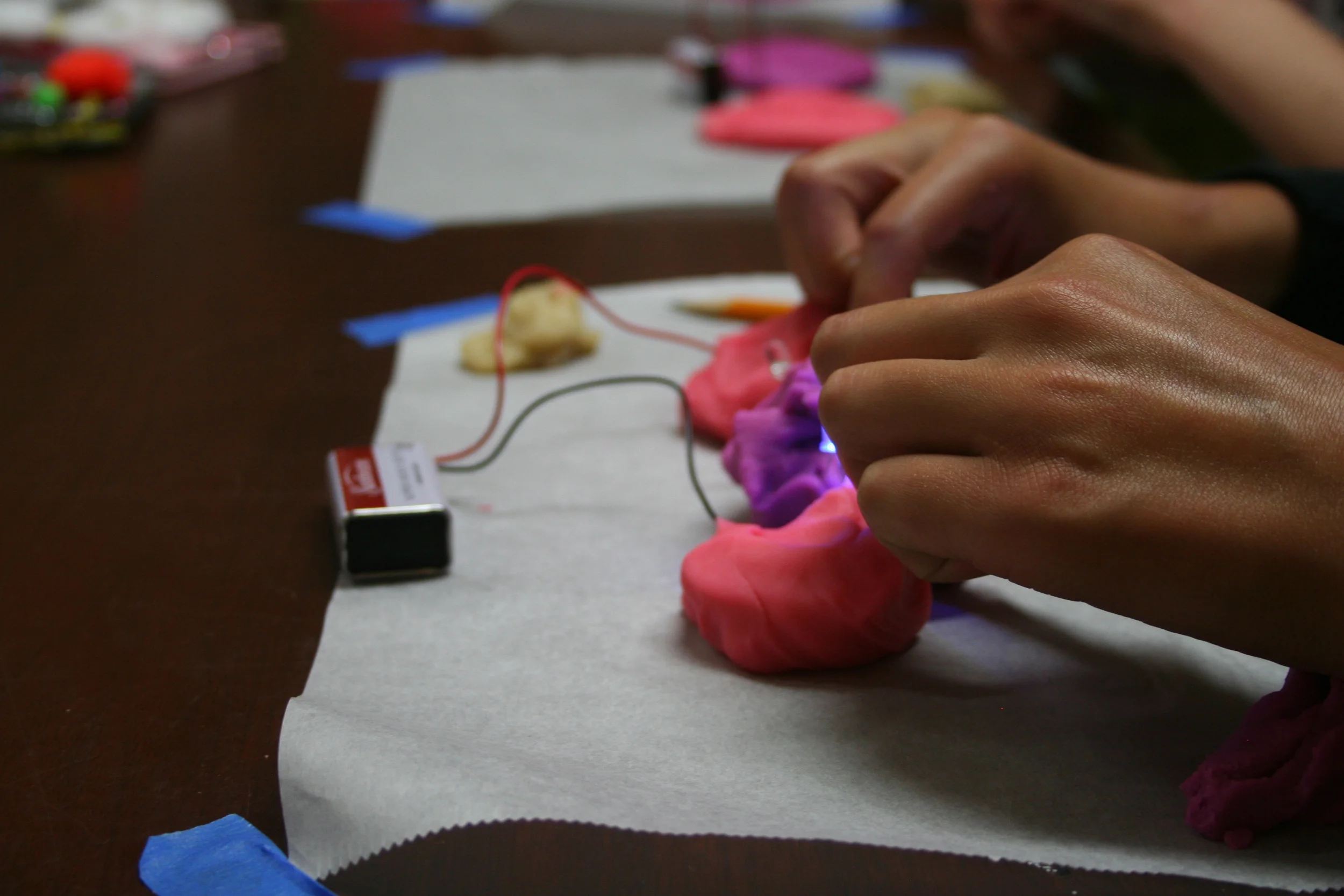 Today we harnessed the power of electricity to create our own circuits! Using conductive putty, LEDs, and a 9V battery we produced light within our custom circuits. After designing our own lights we moved on to crafting survival lean-to's. The objective was to design a tent/lean-to that could protect at least one person from the elements. In addition to all of these challenges, our inventors simultaneously continued to work on their inventions that they would be presenting at the end of this week!