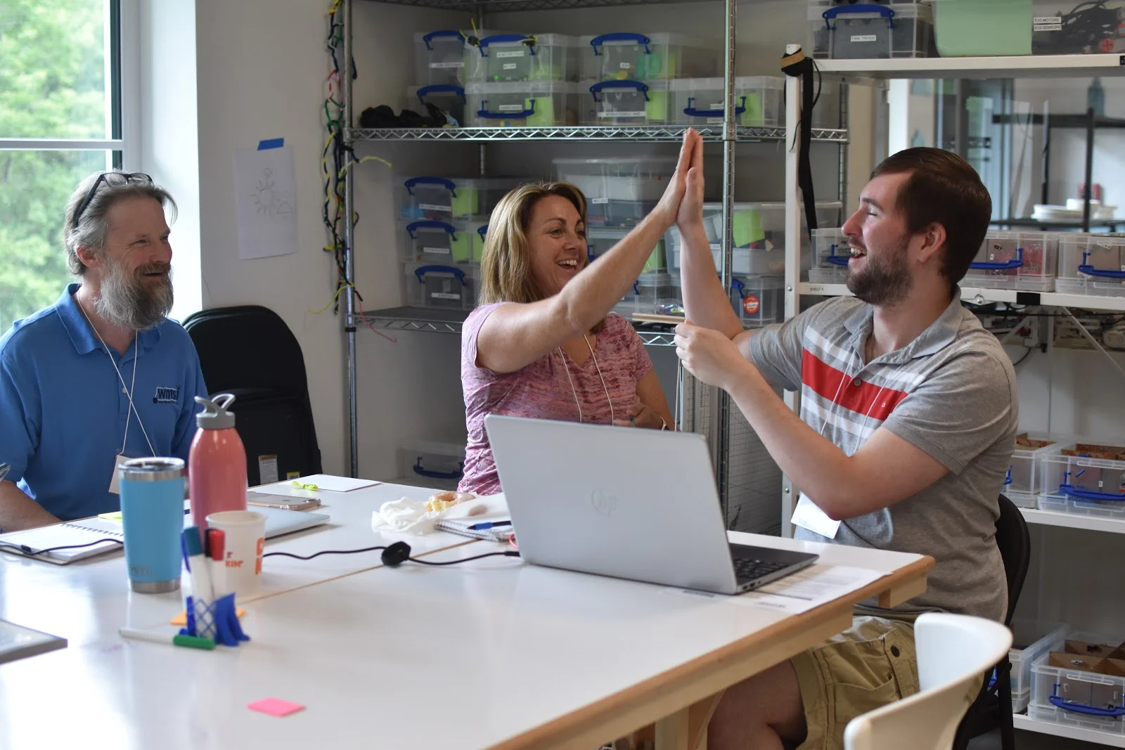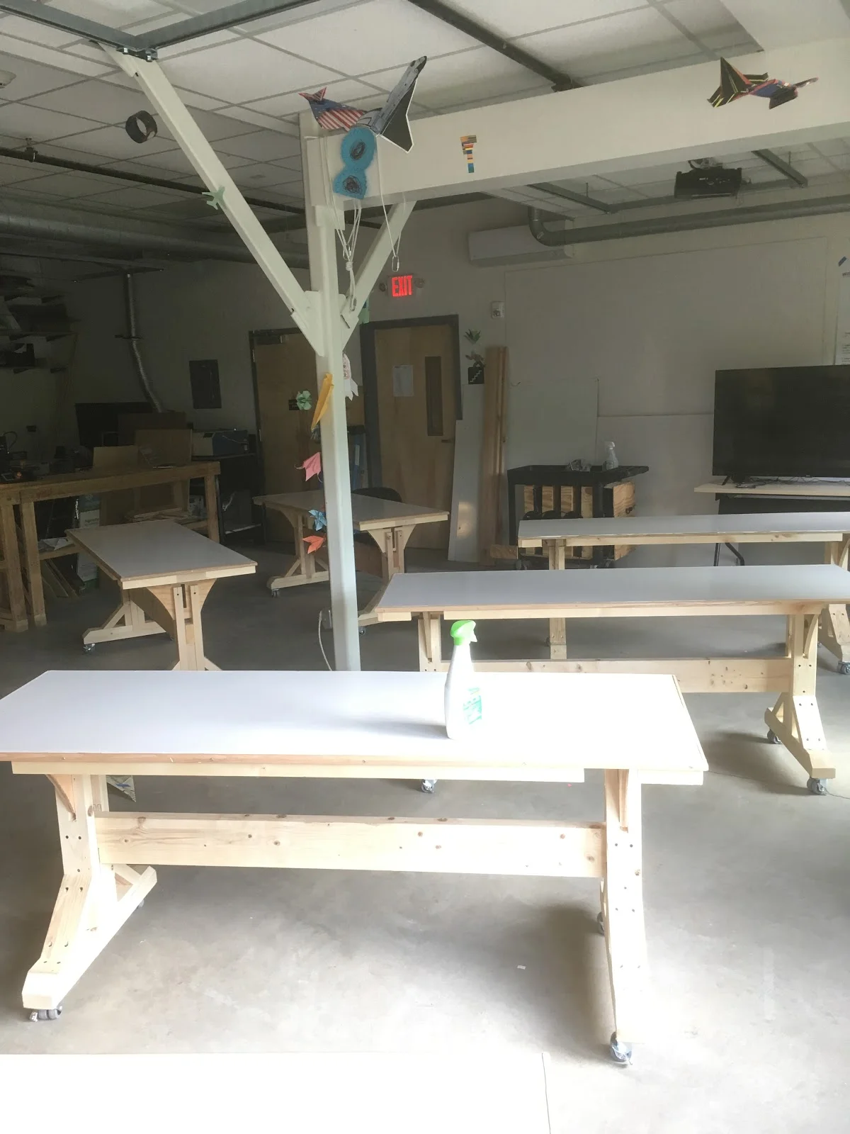 With WMSi’s move into our exciting new location in Littleton, we found ourselves with far more space than ever before. With this space came the ability to be more purposeful in our design and use of the room. We host everything from summer camps to teacher professional development events in our maker space, so flexibility is key. This was our primary motivation when it came to creating tables for the space.